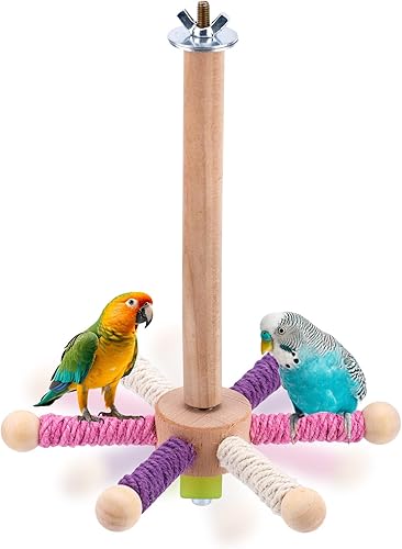 LINSHRY Bird Training Stand, Portable Tabletop Bird Perch Spin Training Perch for Parakeets Conures Lovebirds or Cockatiels