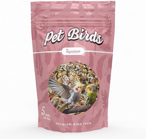 Mycelium Large Pet Bird Food | Clean & Safe Bird Seed Mix for Macaws, Cockatoos, Parrots | High in Protein & Fat with Egg, Corn, Vitamins, Peanuts & Hemp Seed | Organic & Non-GMO 5 lb Bag