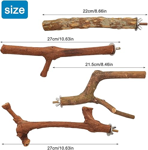 Hamiledyi 4Pcs Natural Wooden Bird Branch Wood Perch Stand Parrot Stand Stick Paw Grinding Cage Accessories for Parrots Parakeets Cockatiels Conures Lovebirds.(8x1in)