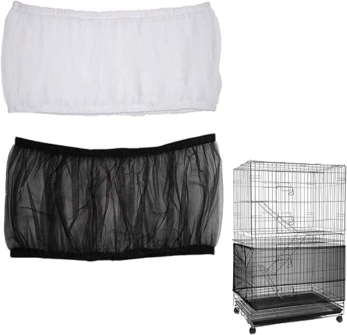 ISMARTEN Bird Cage Seed Catcher (2 Pack), Airy Gauze Bird Cage Cover Seeds Guard Dust-Proof Universal Birdcage Accessories Mesh Net Cover (Black + White, XL)