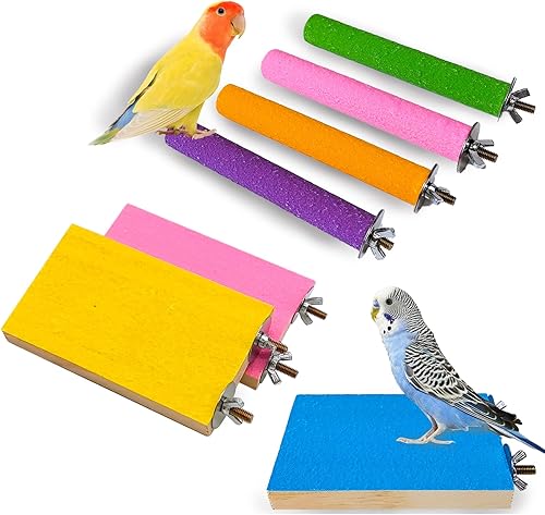 Hamiledyi 5 Pcs Parrot Perch Stand Natural Wood Bird Perch Stand Platform Paw Grinding Sticks Cage Accessories Exercise Toys for Budgies Parakeets Cockatiels Conures Lovebirds