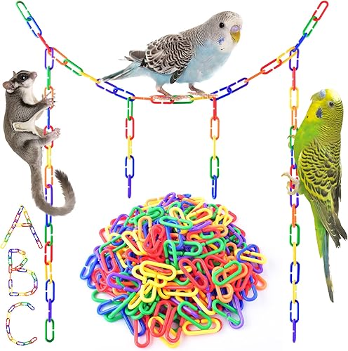 Bissap Plastic Chain Links Birds 250pcs, Mix Color Rainbow DIY C-Clips Chains Hooks Swing Climbing Cage Toys for Sugar Glider Rat Parrot Bird, Children's Learning Toy