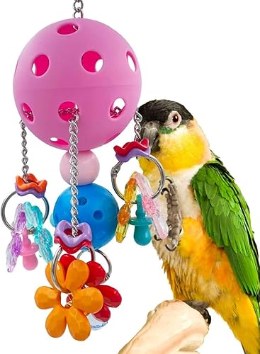 Pullable Bird Plastic Ball Toys with Acrylic Pacifiers and Flowers, Colorful Parrot Toys for Medium and Large Parrot Quaker Monk Parakeet Sun Conures (Light Green)
