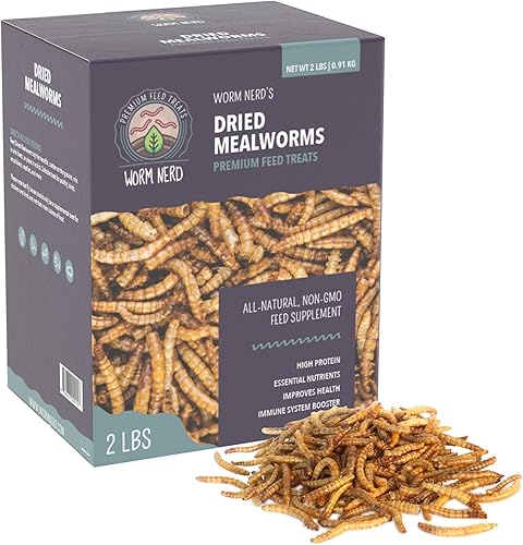 Worm Nerd WN59 2LB Dried Mealworms Non-GMO High Protein and Fiber Treat for Chickens, Birds, Reptiles, Amphibians, Fish