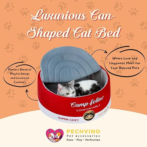 Can-Shaped Cat Bed with Privacy Cover - Comfortable Cushion for Cats & Small Dogs