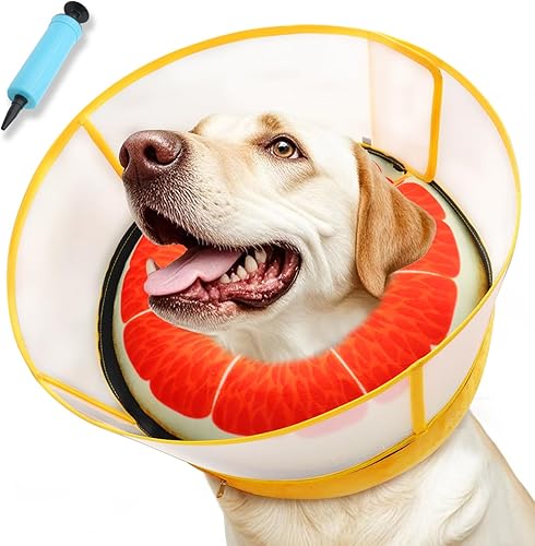 Upgraded Inflatable Dog Cone Collar with Transparent Anti-Licking Shield, Adjustable Elizabethan Collar for Medium Large Dogs, 2-in-1 Design with Detachable Shield and Soft Padding (L, Watermelon)