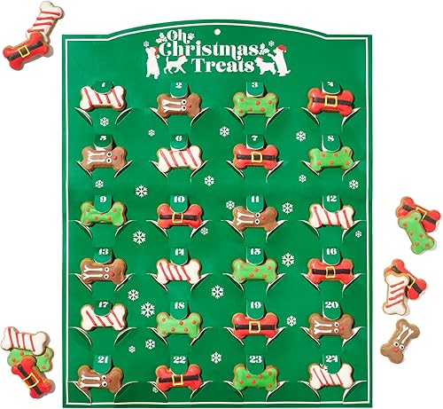 Thoughtfully Pets, 24 Days of Christmas, Dog Advent Calendar 2024, Individually Wrapped Gingerbread Flavored Christmas Dog Treats in Bone Shapes, Set of 24