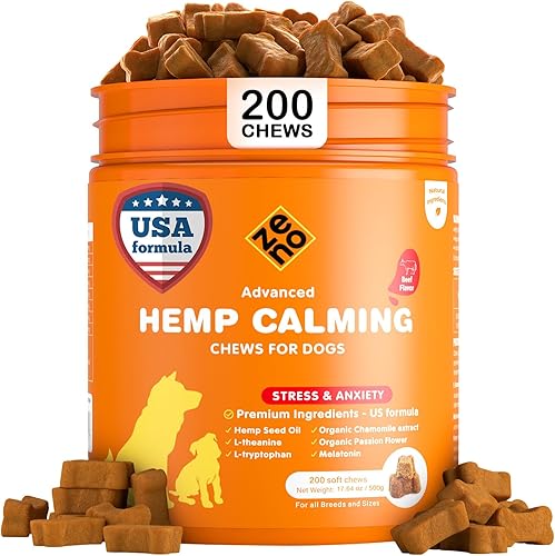 ZENO Hemp Calming Chews for Dogs Anxiety 200 pcs - Chicken Flavored - Anxiety Relief - Calming Chews Treats - Melatonin for Dogs - for Stress, Travel, Check-up, Barking or Grooming