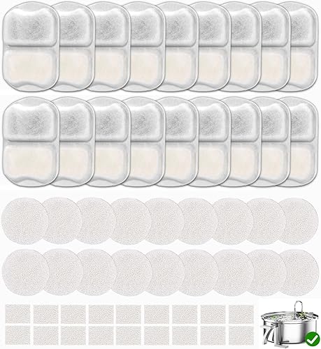 18 Sets Pet Water Fountain Filter Replacement Compatible with Oneisall 7L/230oz Stainless Steel Dog Dispenser - Filtered Dog Water Bowl - Replacement Filters and Sponge