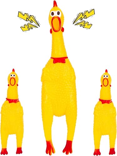 MCPINKY 3PCS Rubber Chicken Dog Toys, Squeaky Chicken Toys Screaming Prank Novelty Gifts for Prank Noise Maker