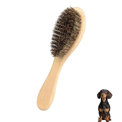 Soft Boar Bristle Dog Brush for Short Haired, Gentle Deshedding & Grooming Tool, Ideal Pet Hair Brush, Puppy Essentials for Grooming and Shedding , Small