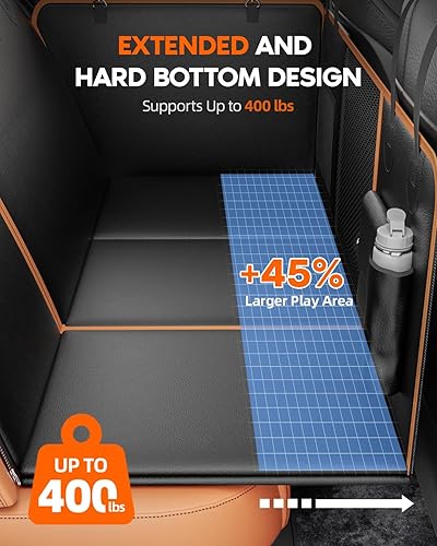 6-in-1 Leather Dog BackSeat Extender, Hard Bottom 40/60 Split Waterproof Car Back/Front Seat Cover, Rear Hammock Carseat Protector, Large Size Pet Mat for SUV/Truck/Cargo, Vehicle Bed Travel Accessory