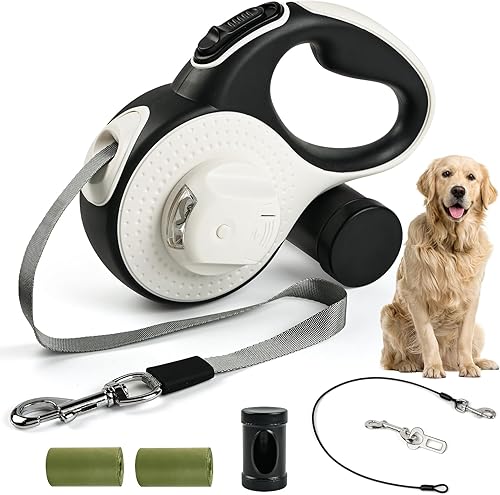 Heavy Duty Retractable Dog Leash for Large Dogs, 26ft Dog Leash with Poop Bag Holder, Up to 100lbs, chew Proof Cable, 2 Rolls Poop Bags, 360° No-Tangle, One-Handed Pause & Locked. (Green, 26ft)