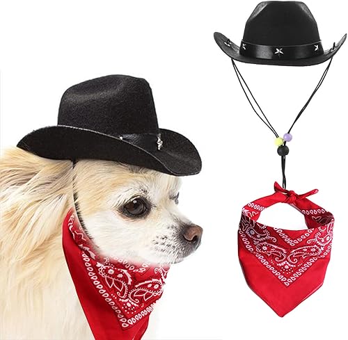 Dog Cowboy Hat and Bandana Scarf Dog Cat Sombrero Puppy Hat Dog Cat Costume Cosplay Cap Puppy Pet Dog Cat Holiday Pet Party Decoration (White)