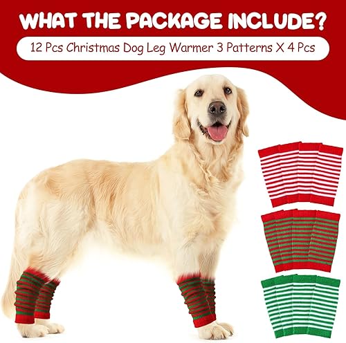 Shihanee 12 Pcs Christmas Dog Leg Warmer Knitted Winter Socks Pet Dog Leg Hock Protector Classic Stripe Elbow Protective Sleeve Joint Elbow Supports for Christmas Winter New Year