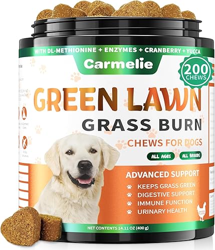 Grass Burn Spot Chews – 200 Chews Dog Pee Grass Spot by Dog Urine – Urine Neutraliser for Lawn – Supports Urinary & Digestive Health with DL-Methionine, Probiotics & Enzymes