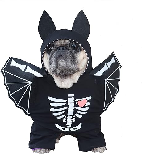 SEIS Dog Bat Costume with Wings Funny Halloween Pet Hoodie Winter Cat Apparel Skeleton Puppy Standing Clothes for Cats Small Medium Dogs French Bulldog Chihuahua (L (Neck Circumference 12.6"/32cm))