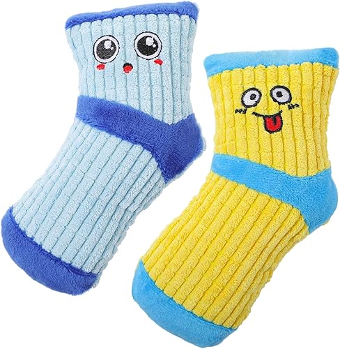 2 PCS Squeaky Dog Toy Funny Dog Chew Toys Cute Expression Bite Toy Fun Sock Shape Stuffed Toys for Dogs Dental Health Small Medium Dogs