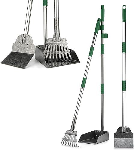 Pooper Scooper, Long Handle Dog Pooper Scooper, Heavy Duty Stainless Steel Rake with Tray & Spade Set for Pet Waste Removal, for Grass, Dirt or Gravel