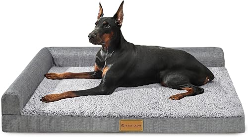 Patas Lague Orthopedic Dog Bed Large Sized Dog 36''X24'', Waterproof L Bolster Medium Pet Sofa Beds with Removable Washable Cover, Soft Comfortable Pet Couch Crate Mat with Nonskid Bottom, Black