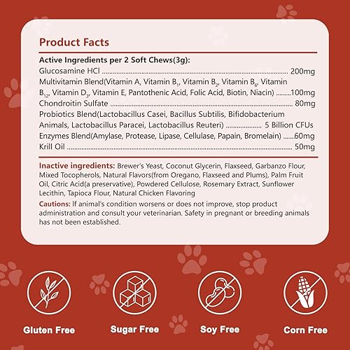 Dog Multivitamin Chewable, with Glucosamine Chondroitin, Digestive Enzymes & Probiotics, for Digestion Support, Immune, Skin, Coat, Joints & Bones Healthy, 120 Chews