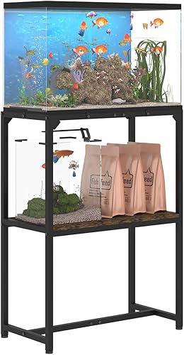 20 Gallon Fish Tank Stand, Upgraded Height Aquarium Stand Table with 2 Tiers Storage Shelf, Metal Reptile Breeder Turtle Terrarium Stand Rack for Home Office, 24" L x 12" W x 32.2" H, White