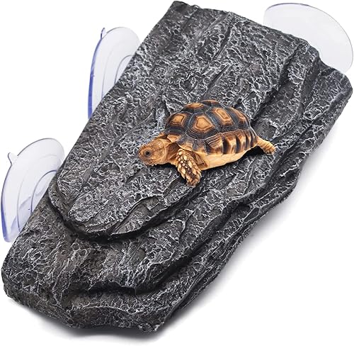 BigTron Turtle Floating Basking Platform - Artificial Bark Decor, Ideal for Aquariums, Terrace Fish Tanks, 3 pcs Suction Cups Included for Easy Installation Resting Terrace for Terrapins (Grey)
