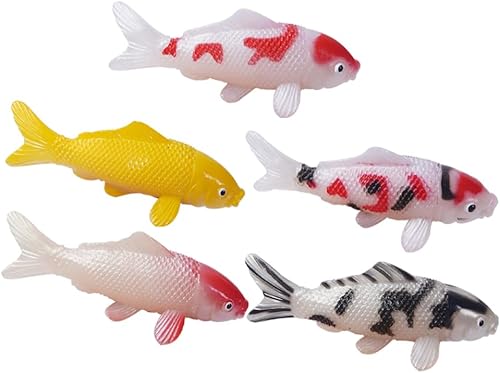 5pcs Artificial Koi Fish Aquarium Fish Plastic Realistic Moving Floating Colorful Gold Fake Decor Gold Figurines Ornament for Tank Pond Garden