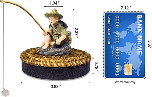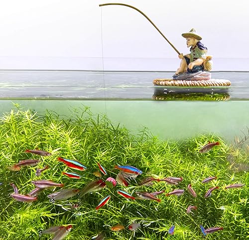 Floating Fish Tank Decorations, Resin Fisherman Aquarium Decor with Realistic Mini Fishing Rod, Fun Fish Feeder Aquarium Ornaments for Guppy Betta and Small Schooling Species Interactive Toy