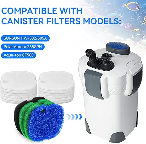 Canister Filter Pads Compatible with SUNSUN HW-302 /505A and Aqua top CF-300 Canisters Filters Sponges Replacement for Polar Aurora 265GPH Canister Filter for Aquarium Fish Tank and Turtle Tank -16PCS