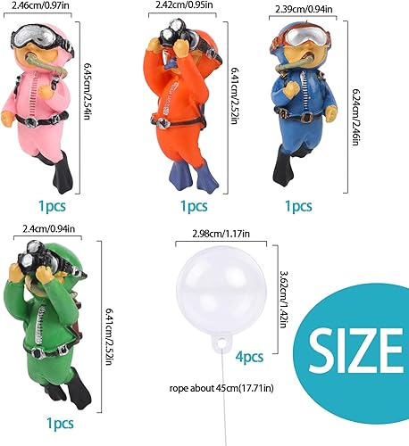 KALIONE Floating Fish Tank Decorations - Cute Little Diver Toys for Aquarium Decor - 4 Pack Ornaments Accessories