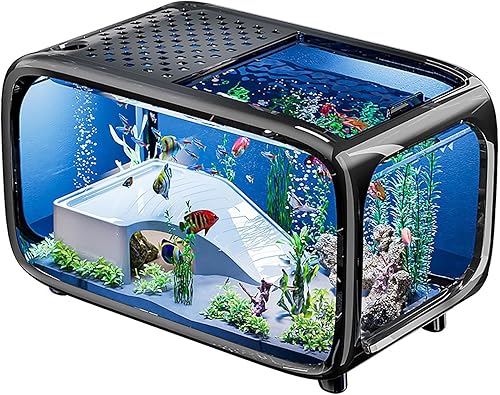 Mini Fish Tank, 6-Gallon Landscape Aquarium with Feeding Hole, Clear Acrylic Nano Tank for Aquatic Pets, Snails, Betta Fish, Shrimp, Turtles(Black)