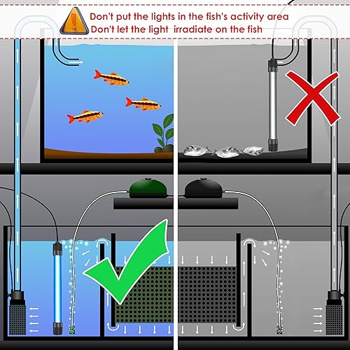 Qualirey 11W Aquarium UV Light for Fish Tank, UVC Light Fish Tank for Aquarium Algae Control, Submersible Waterproof UV Lamp with Timer and Hood for Pond Sump Swimming Pool