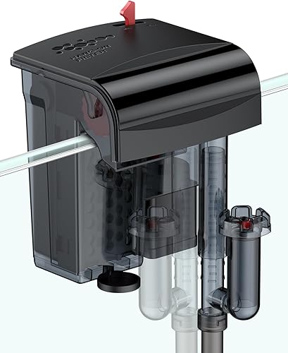 Pawfly 3 W Aquarium Filter, 1-3 Gallon Fish Tank Filter, 65 GPH Hang On Back Aquarium Filter with Water Wheel Adjustable Water Pump & Oil Skimmer, Ultra Quiet HOB Filter for Tank Filtration