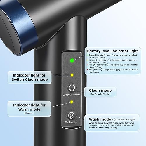 fishkeeper Electric Fish Tank Cleaner – 8W Rechargeable Aquarium Cleaning Tools with Gravel Vacuum, 213GPH Automatic Water Changer with Debris Cleaning & Sand Washing for Freshwater Saltwater Tanks