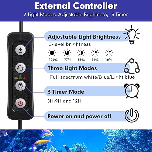 hygger 36W Saltwater Aquarium Light, Reef Light for Corals with Timer Adjustable Color and Brightness, Fish Tank Light with Controller for Marine Aquarium LED 16 to 20-Inch