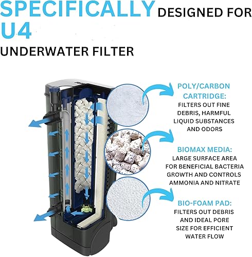 U4 Underwater Filter Media Maintenance & Replacement Filter Media Kit, Including Trident Mesh Bags(U4 Underwater Bio-Foam Pad, U4 BioMax, U4 Poly-Carb Cartridge)