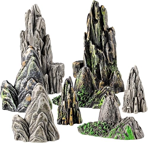 Amosfun 8pcs Resin Mountain Rockery Mini Landscape Garden Bonsai Ornaments Aquarium Decoration Rocks 1.49x0.62 Inches