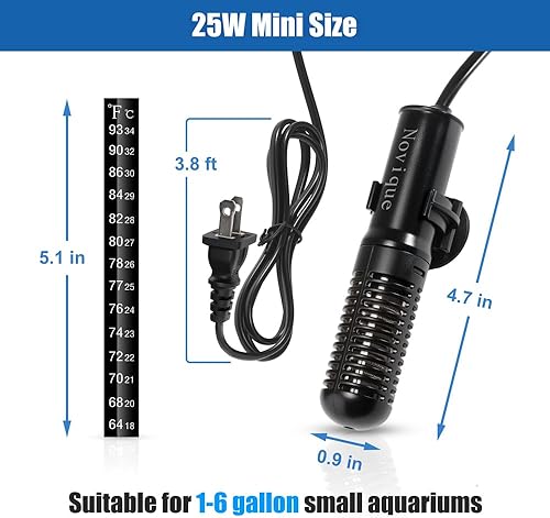 25W Mini Aquarium Heater Submersible Constant Temperature Fish Tank Betta Heater Free Thermometer Sticker Suitable for 1-6 Gallons Saltwater and Freshwater Tanks