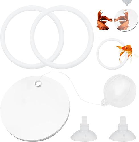 2 Pcs Betta Fish Exercise Ring and Betta Mirror Set,Betta Ring Enrichment Toys,Betta Toys Suitable for Fish Tank, Betta Tank, Betta Aquarium