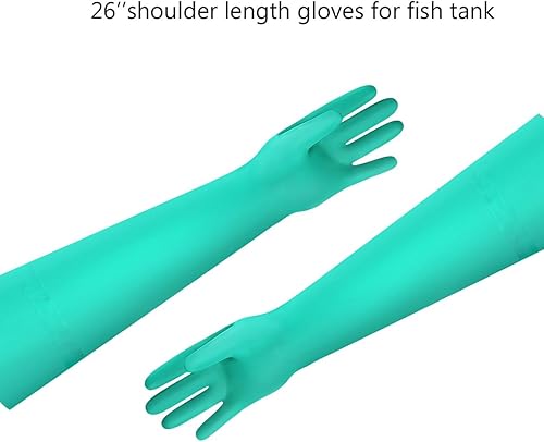 Aquarium Gloves for Fish Tank Maintenance,Shoulder Length Waterproof Long Rubber Hands Protector for Fish Aquarium Water Change Cleaner Dog Cat Bath and Kitchen,Large