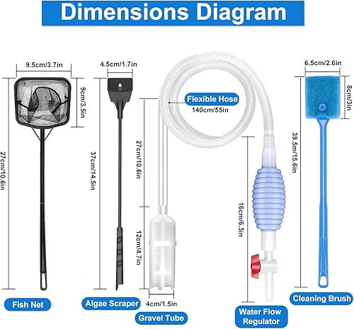 Fish Tank Cleaning Kit Set of 4 Pieces, Aquarium Siphon Algae Scraper Aquarium Net Algae Remover for Fish Tank, Aquarium Cleaner Vacuum Suitable for Changing Water and Cleaning Fish Tanks