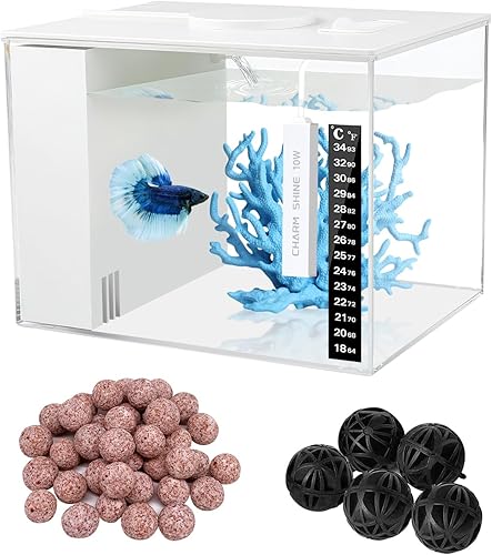 Fish Tank Betta Starter Kit 1 Gallon Desktop Small Aquarium Kit with 10W Heater LED Light and Filter Media & Water Pump– Compact Aquarium for Betta Fish, Small Fish, Shrimp, or Plants