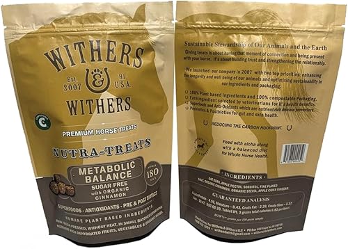 Withers & Withers Sugar-Free Horse Treats – Cinnamon with Oat Bran Horse Cookies, Goat Treats, Healthy Treats for Horses 16 Oz, 100% Compostable Bag – Humane Plant-Based Ingredients