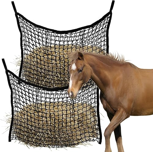 Tackmore 2pcs 36’’ Length Slow Feed Hay Nets for Horses & Livestock Easy to Hang Hay Bags for Horses with Drawstring Closure-Black 1.75" (Slow Feed)