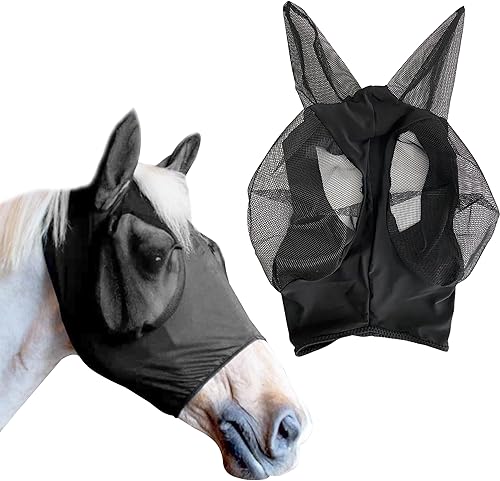 Soft Nylon Micromesh Horse Fly Mask | Fly Masks for Horses with Ears | Horse Fly Mask with Ears | Protection from Sun’s UV Rays | Comfortable Fly mesh mask with Breathable & Stretchy (Black Medium)