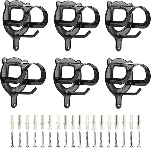 6 Pcs Horse Bridle Rack Wall Mount Black Metal Bridle Holder with Hook and Screws Bracket for Horse Barn Tack Room Stall Storage Derby Day Supplies