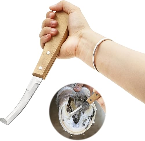 2PCS Stainless Steel Double Edged Hoof Knive with Wooden Handle, Stainless Steel Blade Suitable Hoof Knife for Horses The Toes of Horses, Cows, and Sheep, Repair Knives for Hoof Maintenance