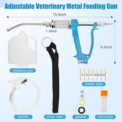 30ml Adjustable Veterinary Metal Feeding Gun Continuous Drench Gun Husbandry Autonomous Feeding Tool, Pig Cow, Sheep, Horse Metal Feeding Gun