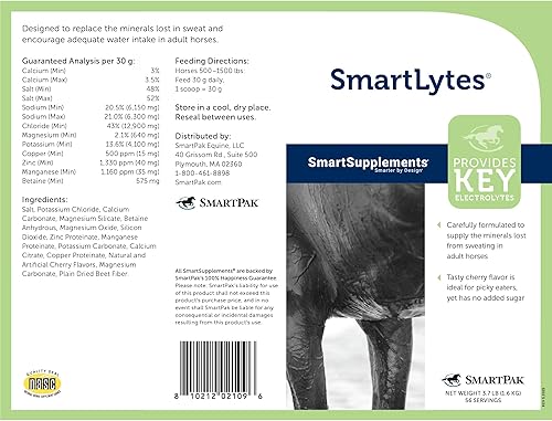 SmartLytes Horse Electrolyte Powder Supplement | Encourages Hydration, Replenishes Electrolytes | No Added Sugar | Cherry Flavor | 56 Servings | 3.7 lb Bucket